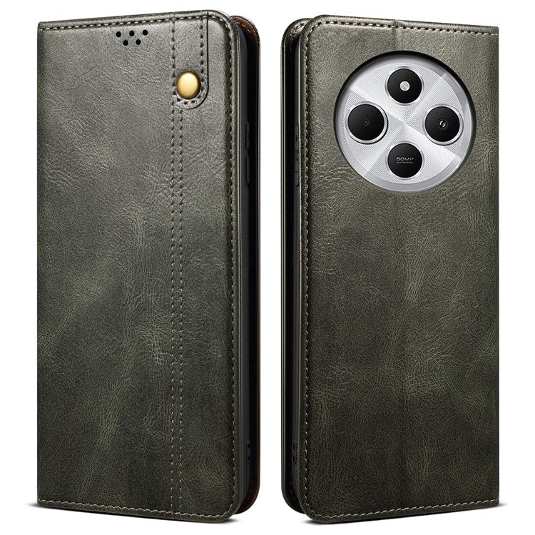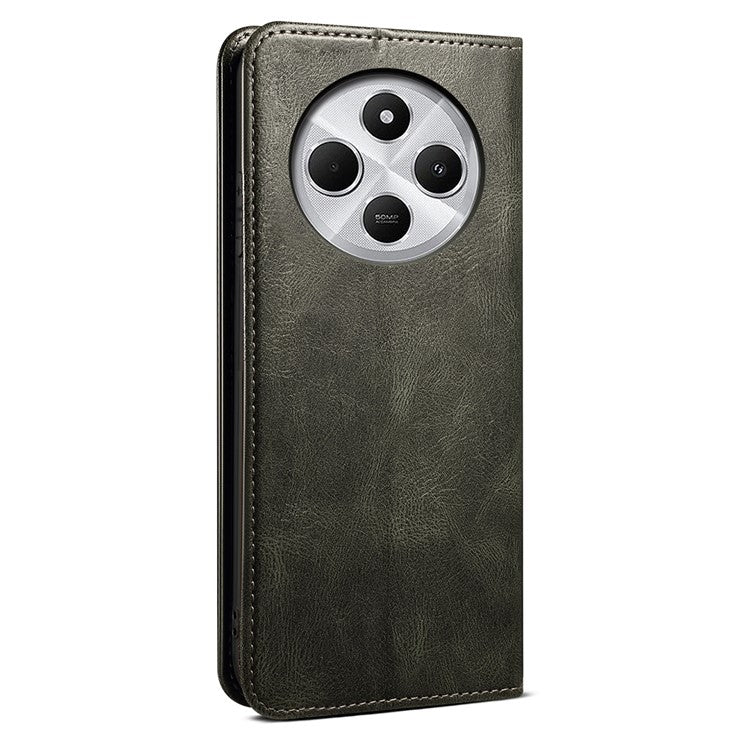 For Xiaomi Poco C75 4G / Redmi 14R 5G / 14C 4G Case Crazy Horse Texture Waxy Leather Wallet Stand Phone Cover - Green