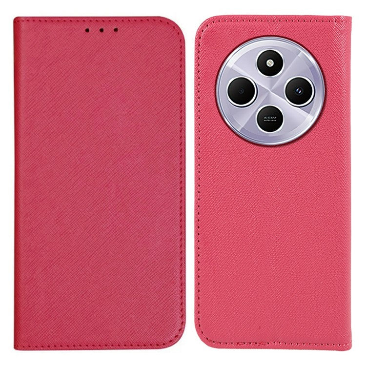 For Xiaomi Poco C75 4G / Redmi 14R 5G / 14C 4G Case Cross Texture Leather Phone Cover Hidden Magnetic - Pink
