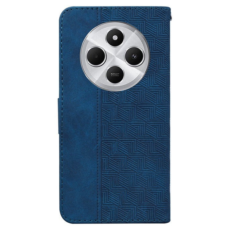 For Xiaomi Poco C75 4G / Redmi 14R 5G / 14C 4G Case Geometry Pattern Leather Wallet Phone Cover - Blue