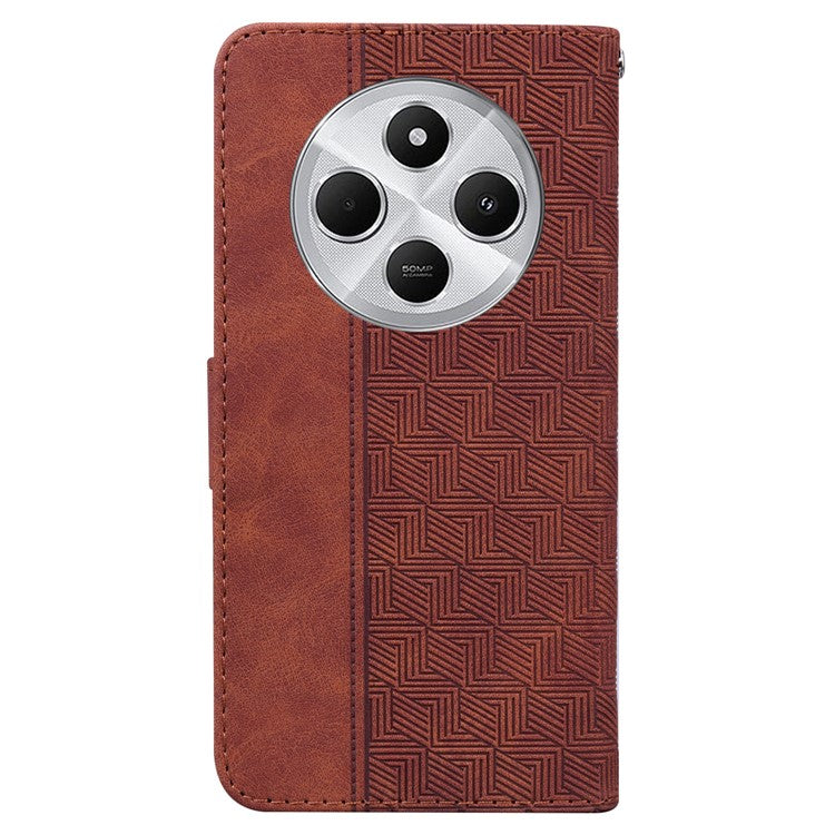 For Xiaomi Poco C75 4G / Redmi 14R 5G / 14C 4G Case Geometry Pattern Leather Wallet Phone Cover - Brown