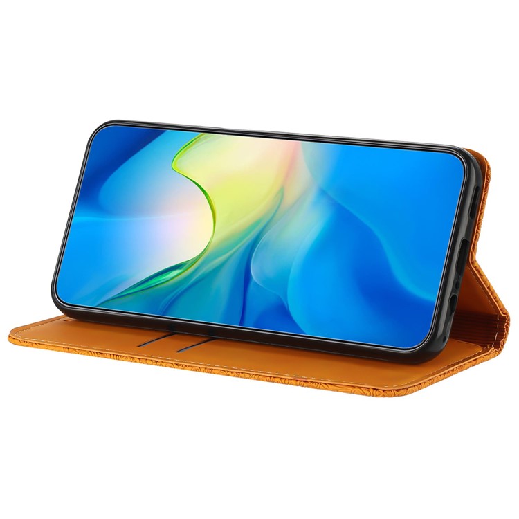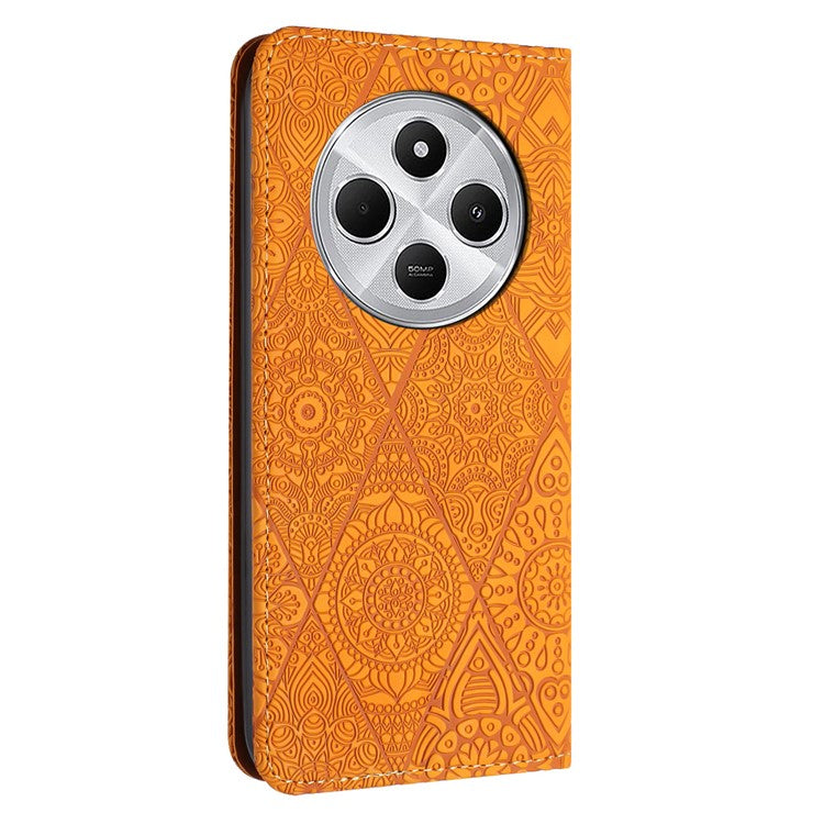 For Xiaomi Poco C75 4G / Redmi 14R 5G / 14C 4G Case Imprinted Flower Wallet Stand Leather Phone Cover - Yellow