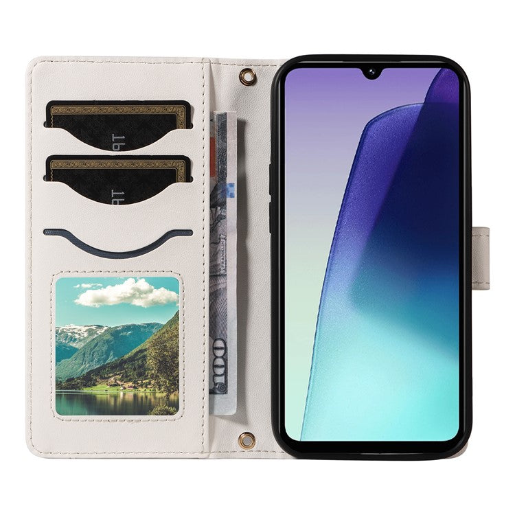 For Xiaomi Poco C75 4G / Redmi 14R 5G / 14C 4G Case Wallet Rhombus Leather Phone Cover with Shoulder Strap, Wrist Strap - White