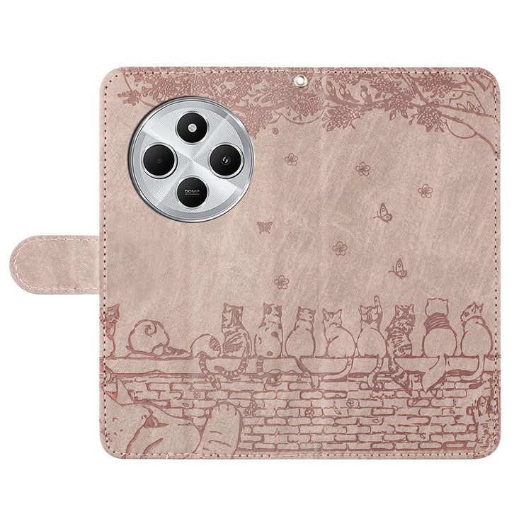 For Xiaomi Poco C75 4G / Redmi 14R 5G / 14C 4G Case with Wrist Strap Leather Phone Cover Wall Cats Pattern - Smoky Purple