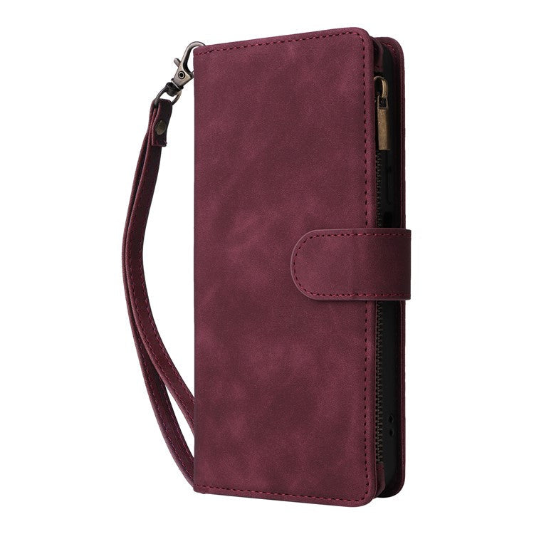For Xiaomi Poco C75 4G / Redmi 14R 5G / 14C 4G Case Zipper Wallet Multiple Card Slots Leather Phone Cover - Wine Red