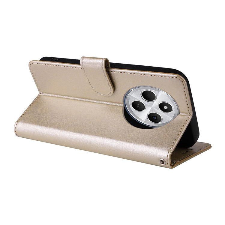 For Xiaomi Poco C75 4G / Redmi 14R 5G / 14C 4G Leather Case Butterfly Floral Imprint Wallet Stand Cover - Gold