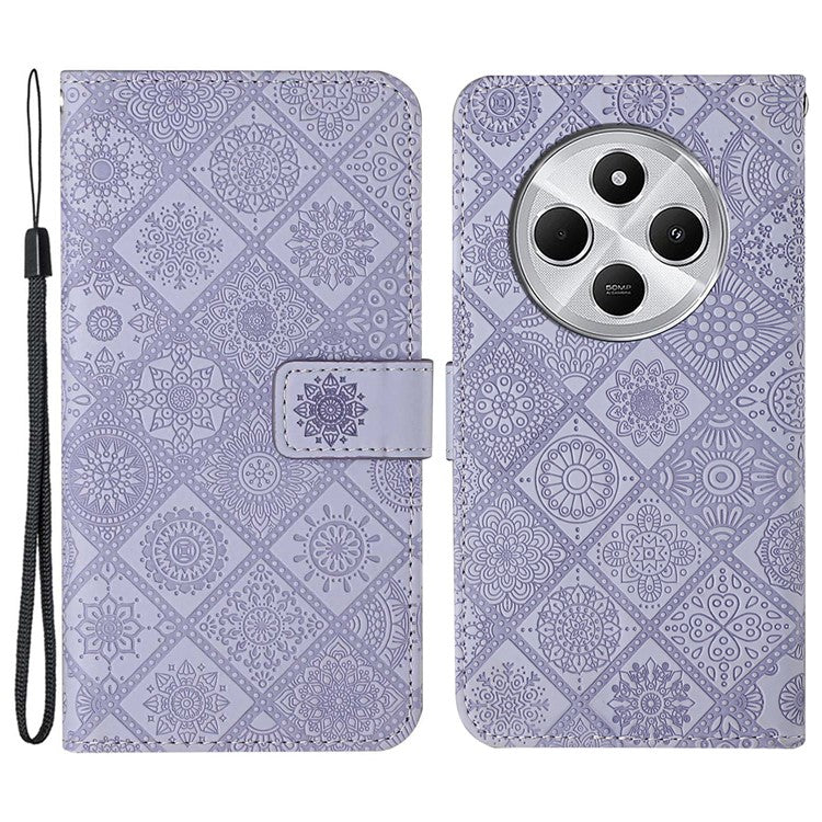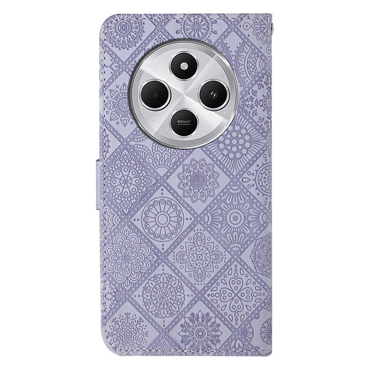 For Xiaomi Poco C75 4G / Redmi 14R 5G / 14C 4G Leather Case Ethnic Style Phone Wallet Cover with Strap - Purple