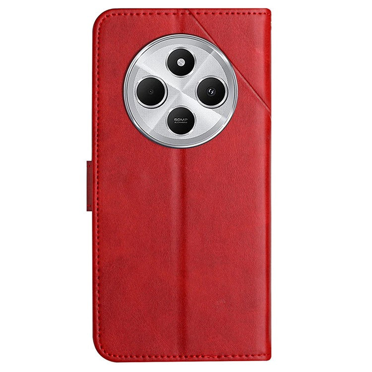 For Xiaomi Poco C75 4G / Redmi 14R 5G / 14C 4G Leather Case Line Pattern Wallet Phone Cover - Red