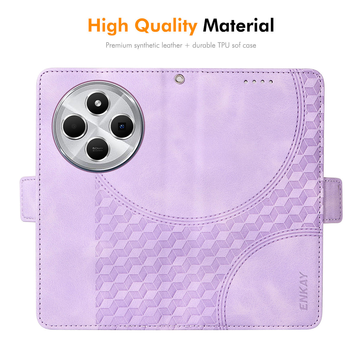 For Xiaomi Poco C75 4G / Redmi 14R 5G / 14C 4G Wallet Case ENKAY Imprint PU Leather Phone Stand Cover with Tempered Glass - Black