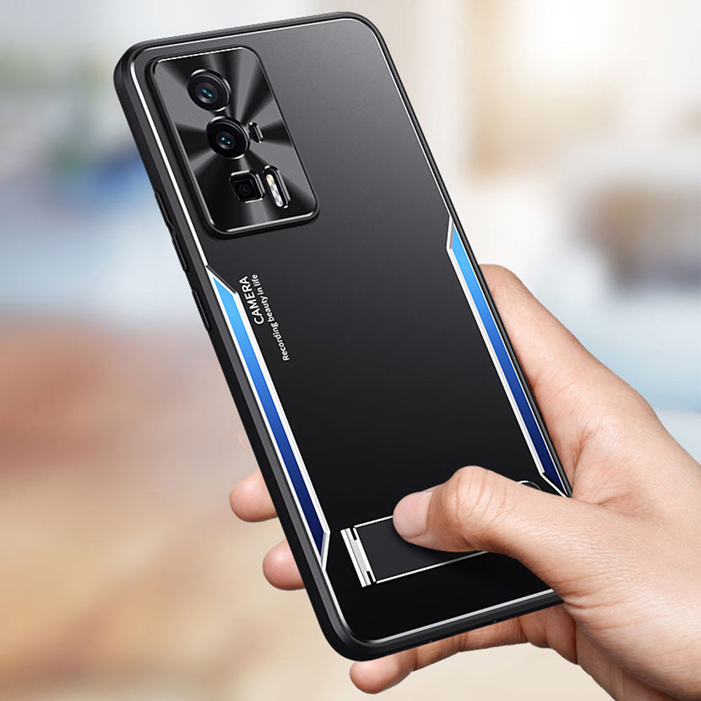 Uniqkart for Xiaomi Poco F5 Pro 5G / Redmi K60 5G / K60 Pro 5G Kickstand Phone Cover TPU + Aluminium Alloy Case - Gold