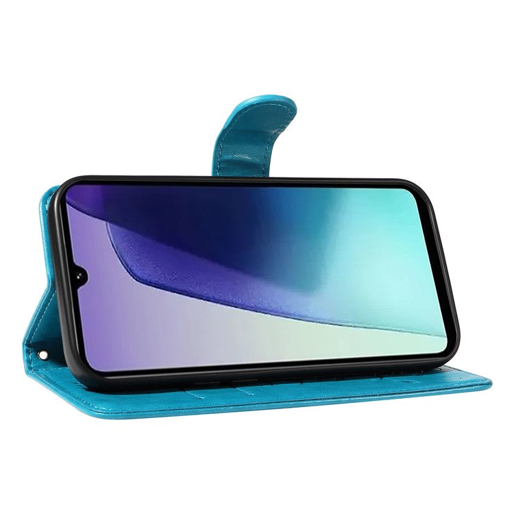 For Xiaomi Redmi 14C 4G Case Flower Pattern PU Leather Wallet Phone Cover - Blue