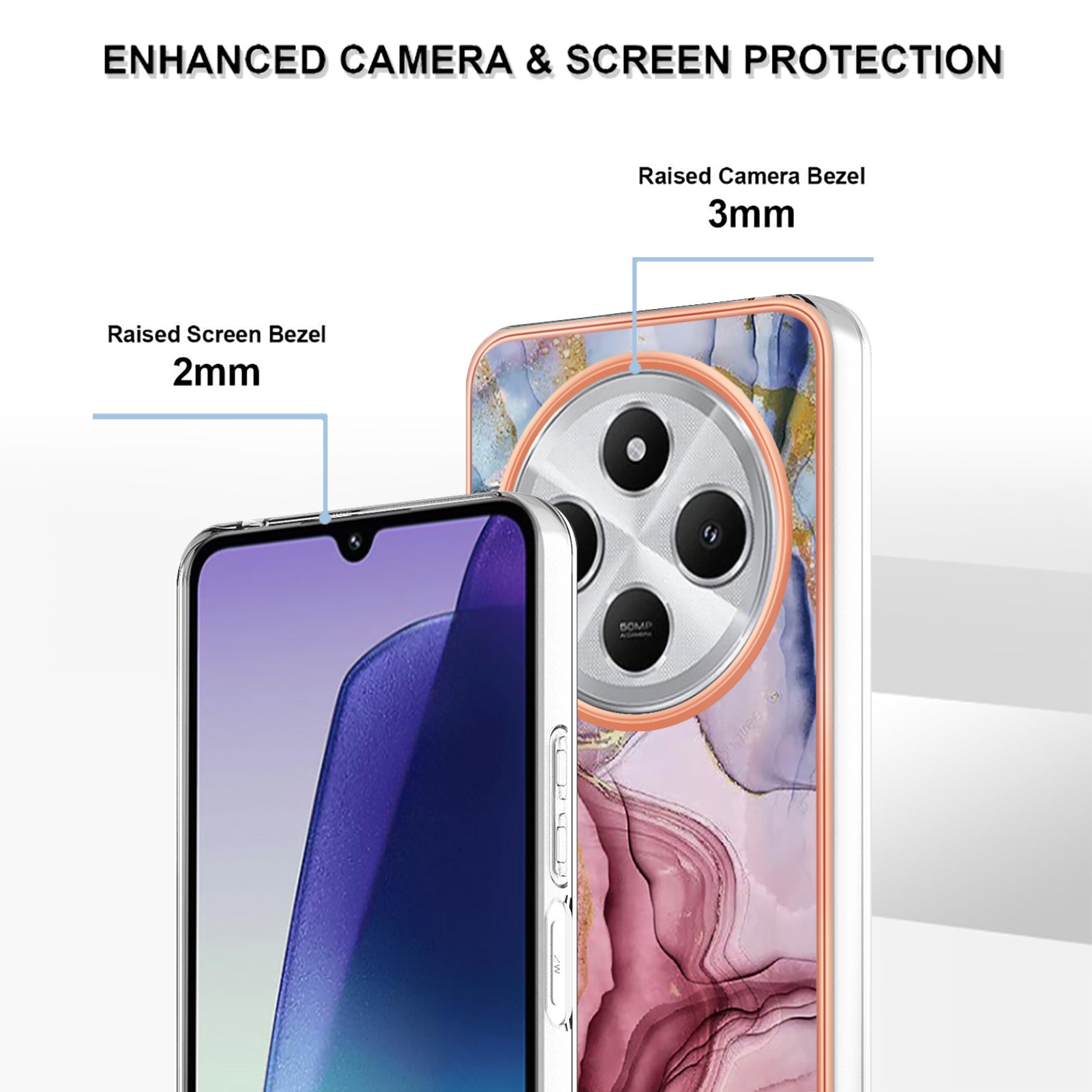 For Xiaomi Redmi 14R 5G / Xiaomi Poco C75 4G / Xiaomi Redmi 14C 4G TPU Case Marble Pattern 2.0mm Electroplating Phone Back Cover - Rose Gold