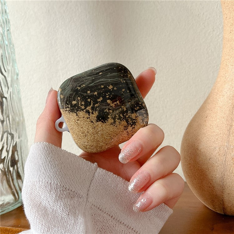For Xiaomi Redmi Buds 6 Active Shockproof Case Marble Pattern Headset Hard PC Cover - Black / Gold