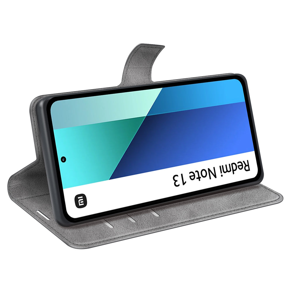 For Xiaomi Redmi Note 13 4G Leather Wallet Case Flip Phone Cover Magnetic Clasp - Grey