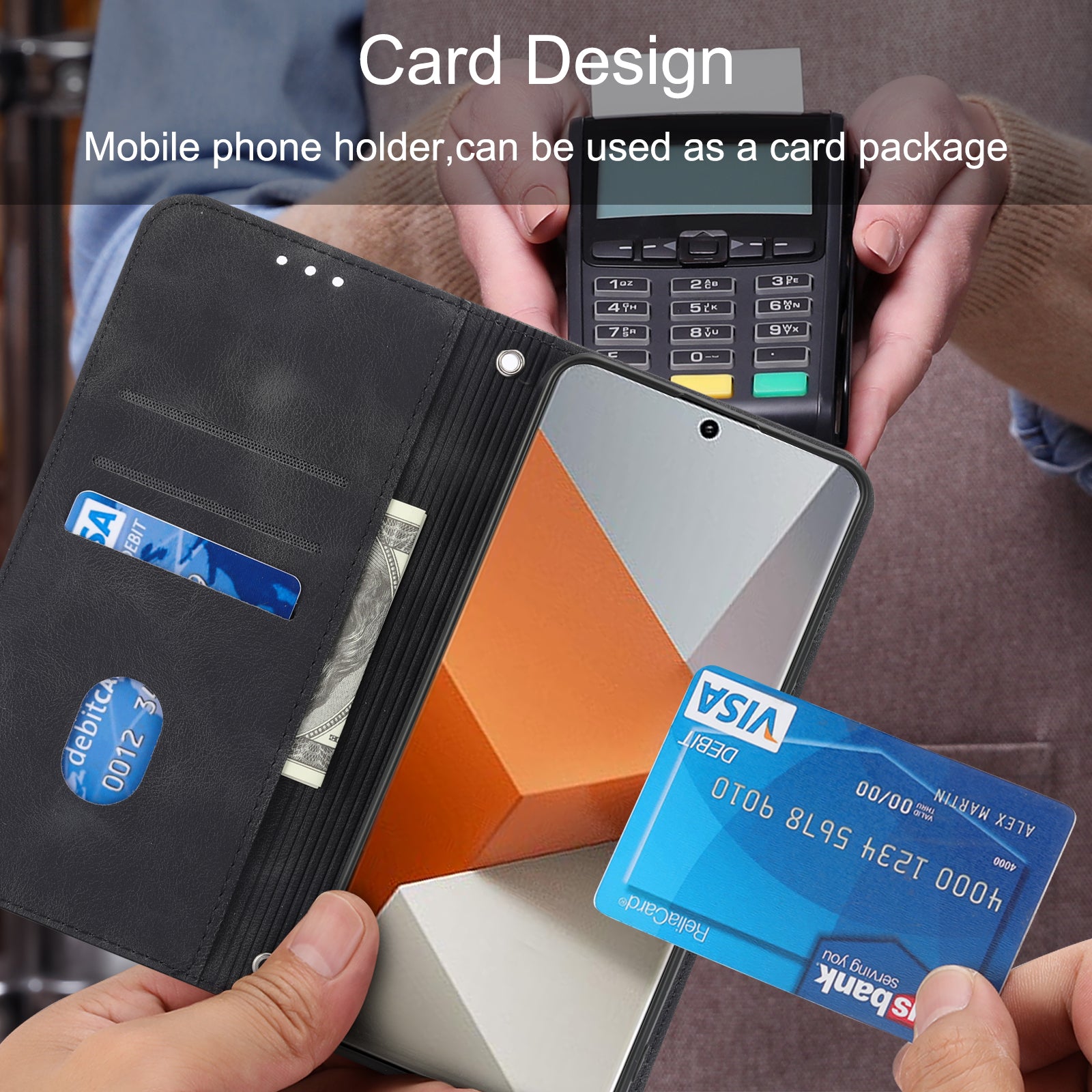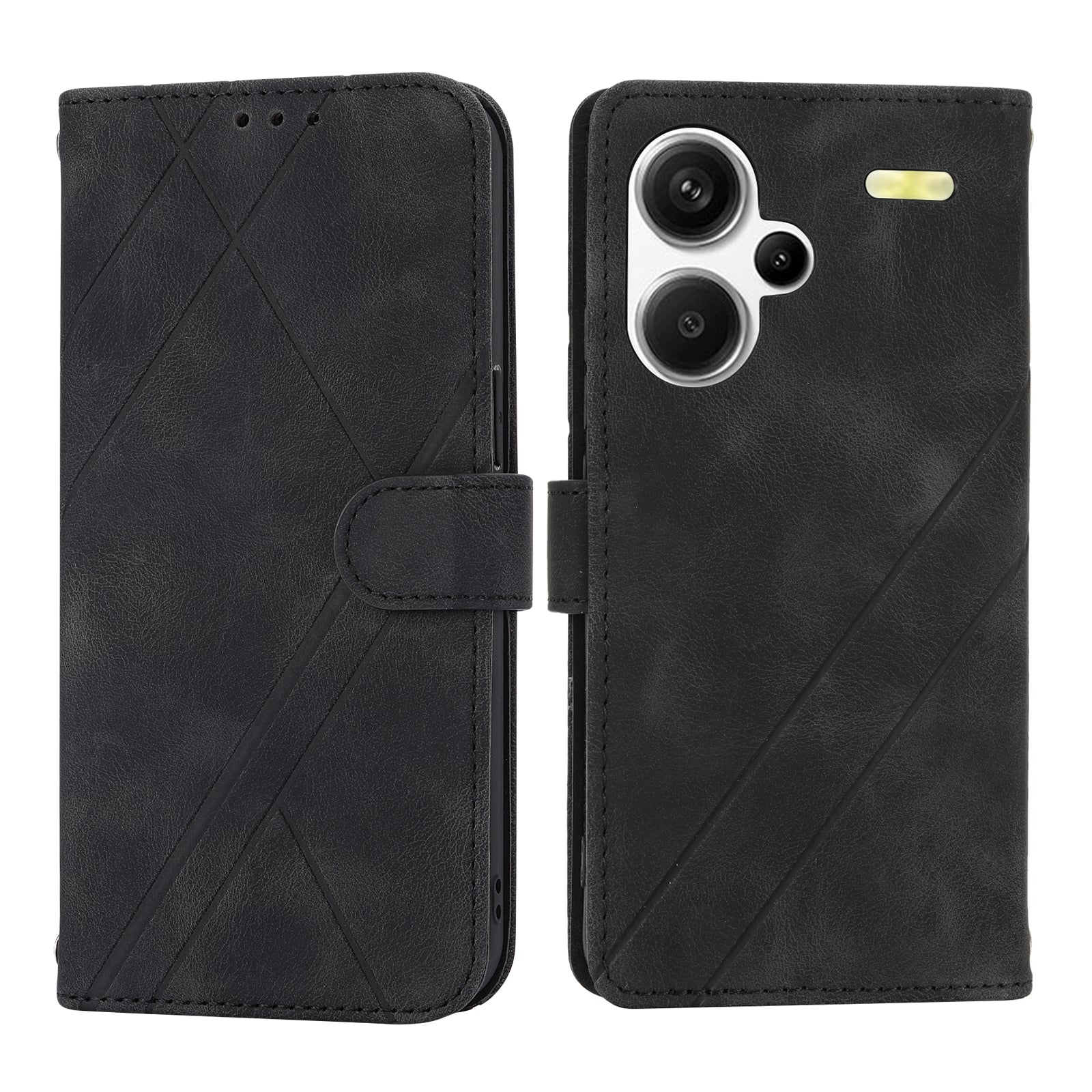 For Xiaomi Redmi Note 13 Pro+ 5G Case Imprinted Line Card Slots Shockproof Phone Cover - Black