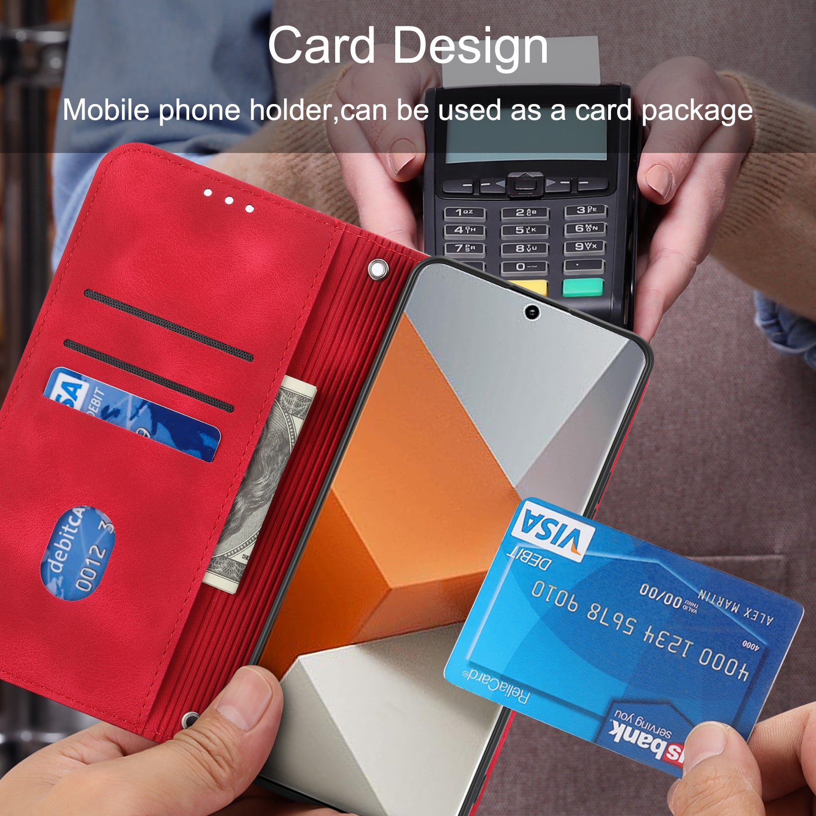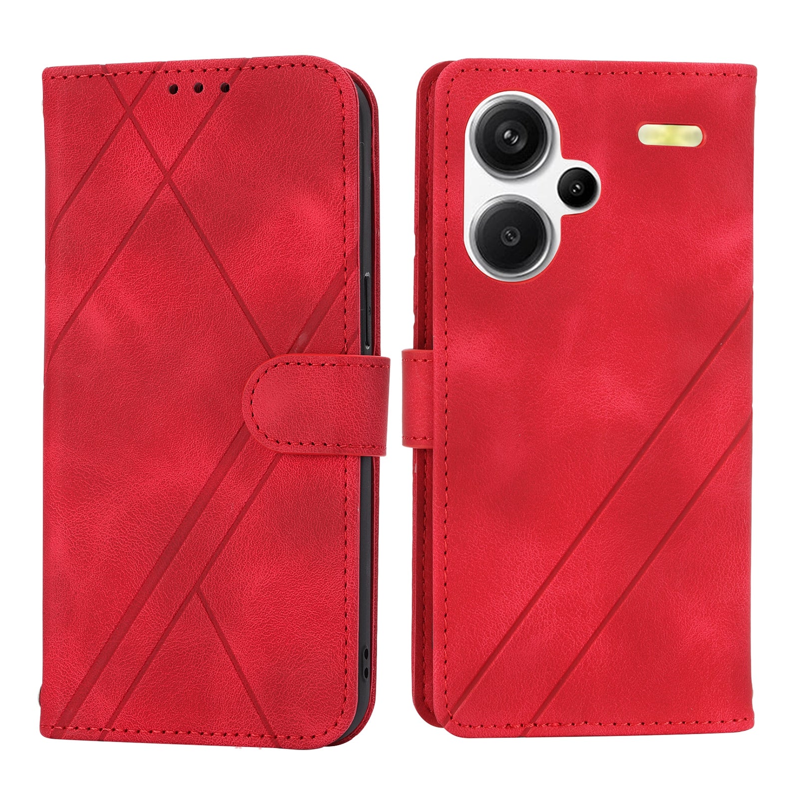 For Xiaomi Redmi Note 13 Pro+ 5G Case Imprinted Line Card Slots Shockproof Phone Cover - Red