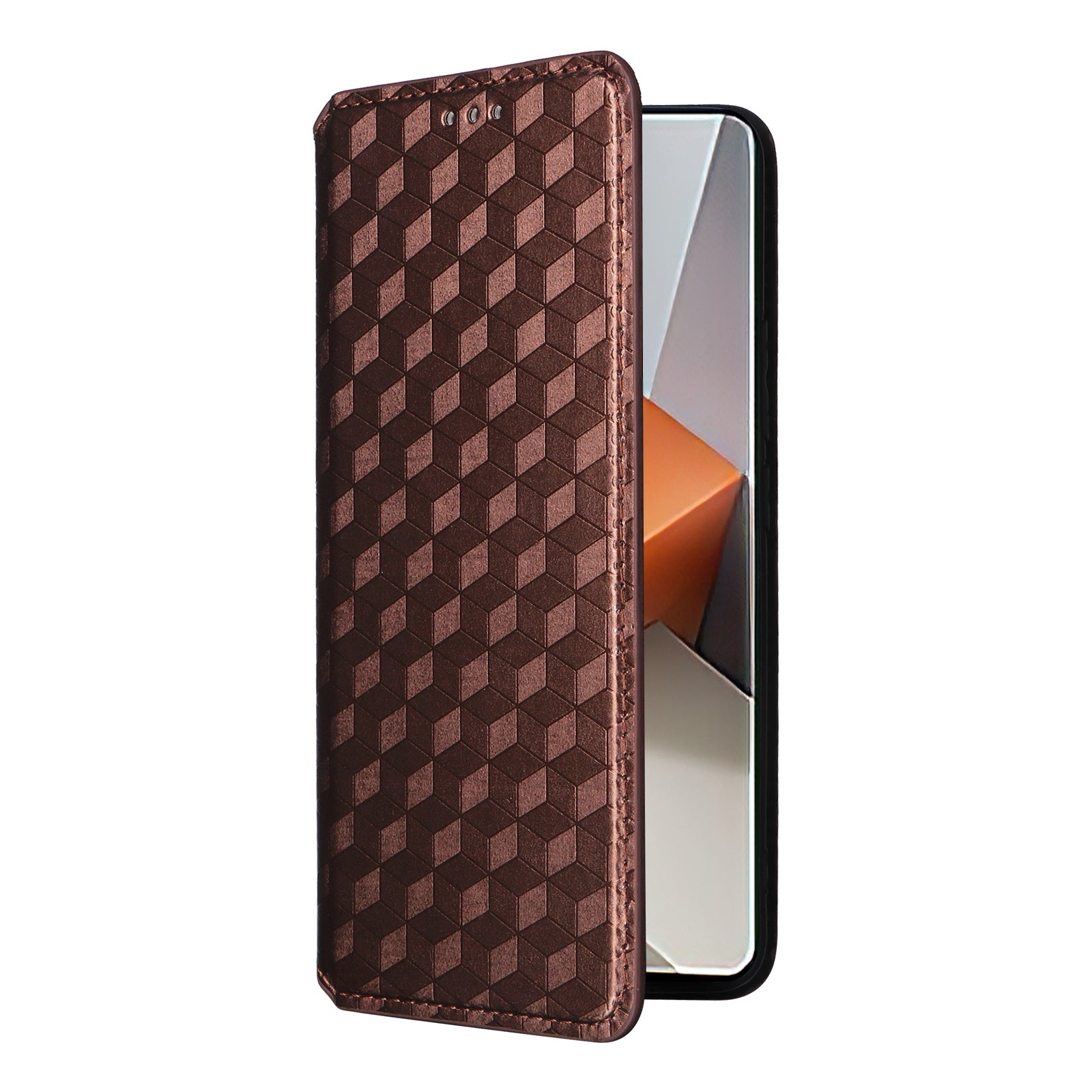 For Xiaomi Redmi Note 13 Pro+ 5G Case Rhombus Imprinted PU Leather Cover with Wallet - Brown