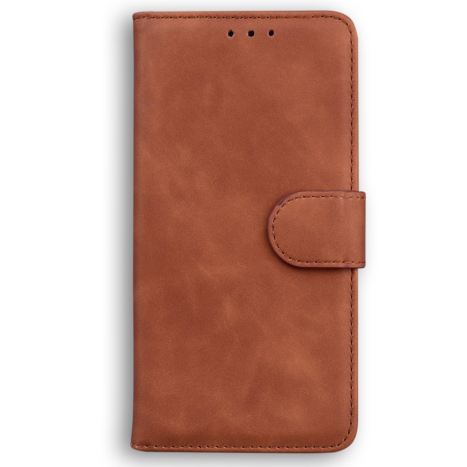 For Xiaomi Redmi Note 13 Pro+ 5G Case Solid Color Leather Phone Cover Stand Card Holder - Brown
