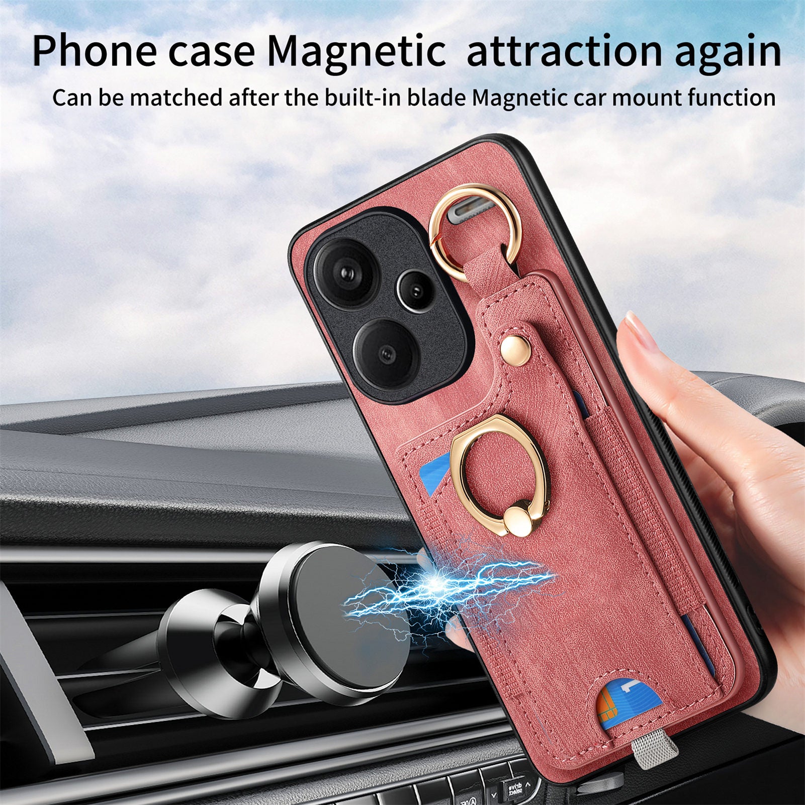 For Xiaomi Redmi Note 13 Pro+ 5G Case with Card Holder Retro Leather Back Cover Ring Kickstand - Pink