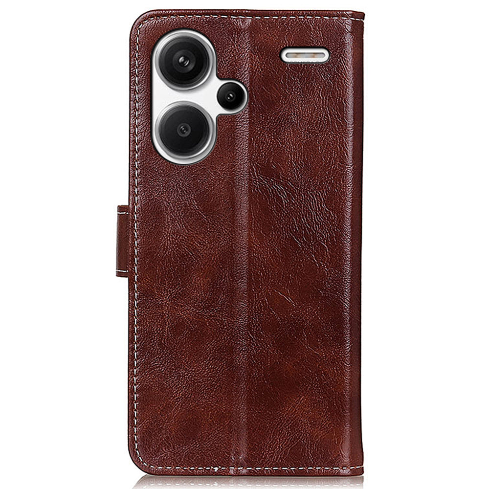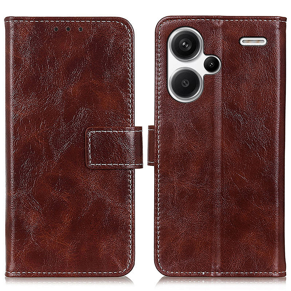 For Xiaomi Redmi Note 13 Pro+ 5G Cell Phone Case PU Leather Crazy Horse Texture Wallet Cover - Brown