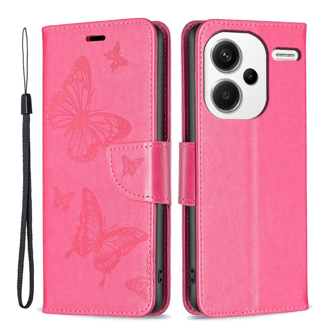 For Xiaomi Redmi Note 13 Pro+ 5G Leather Case with Wallet Stand Butterfly Imprinted - Rose