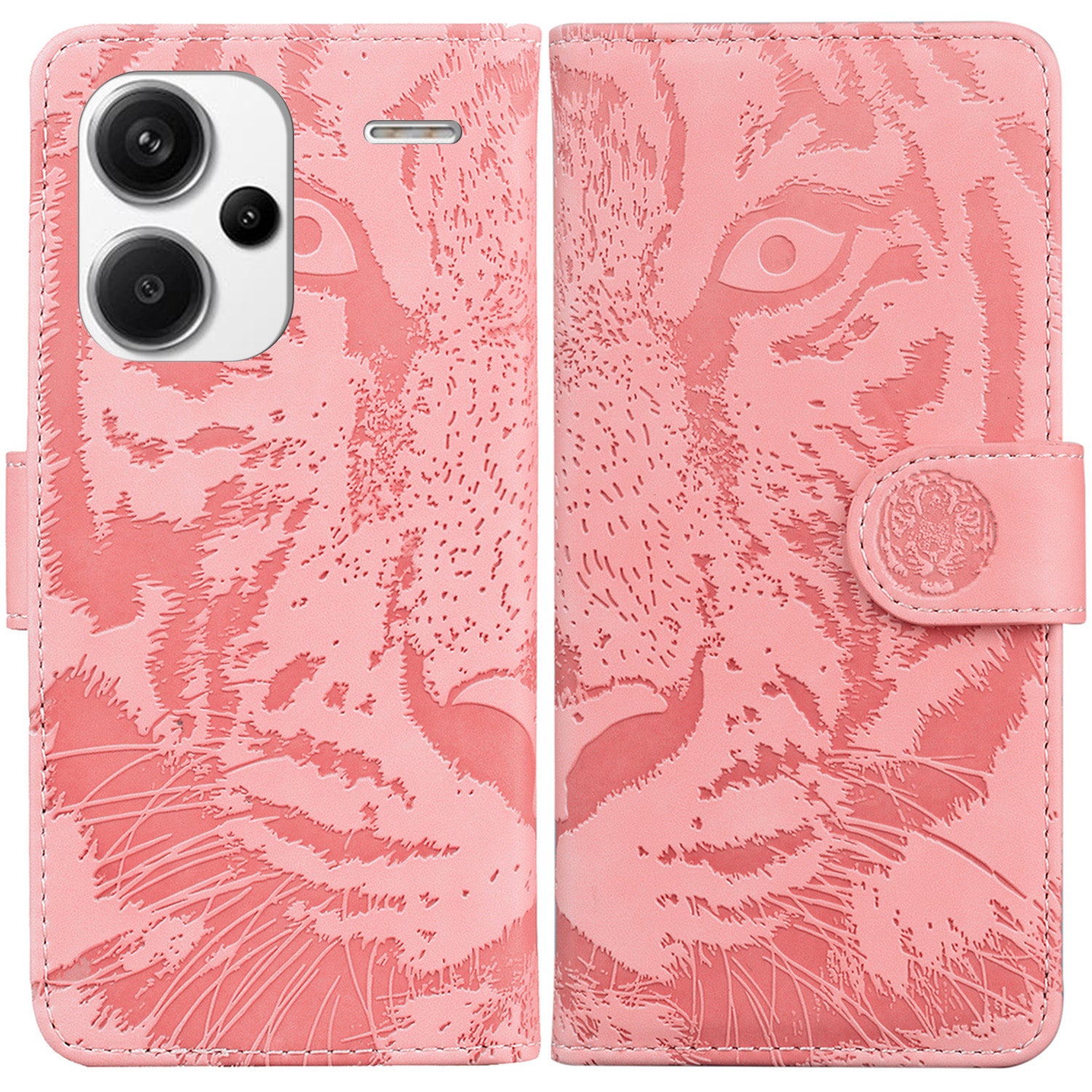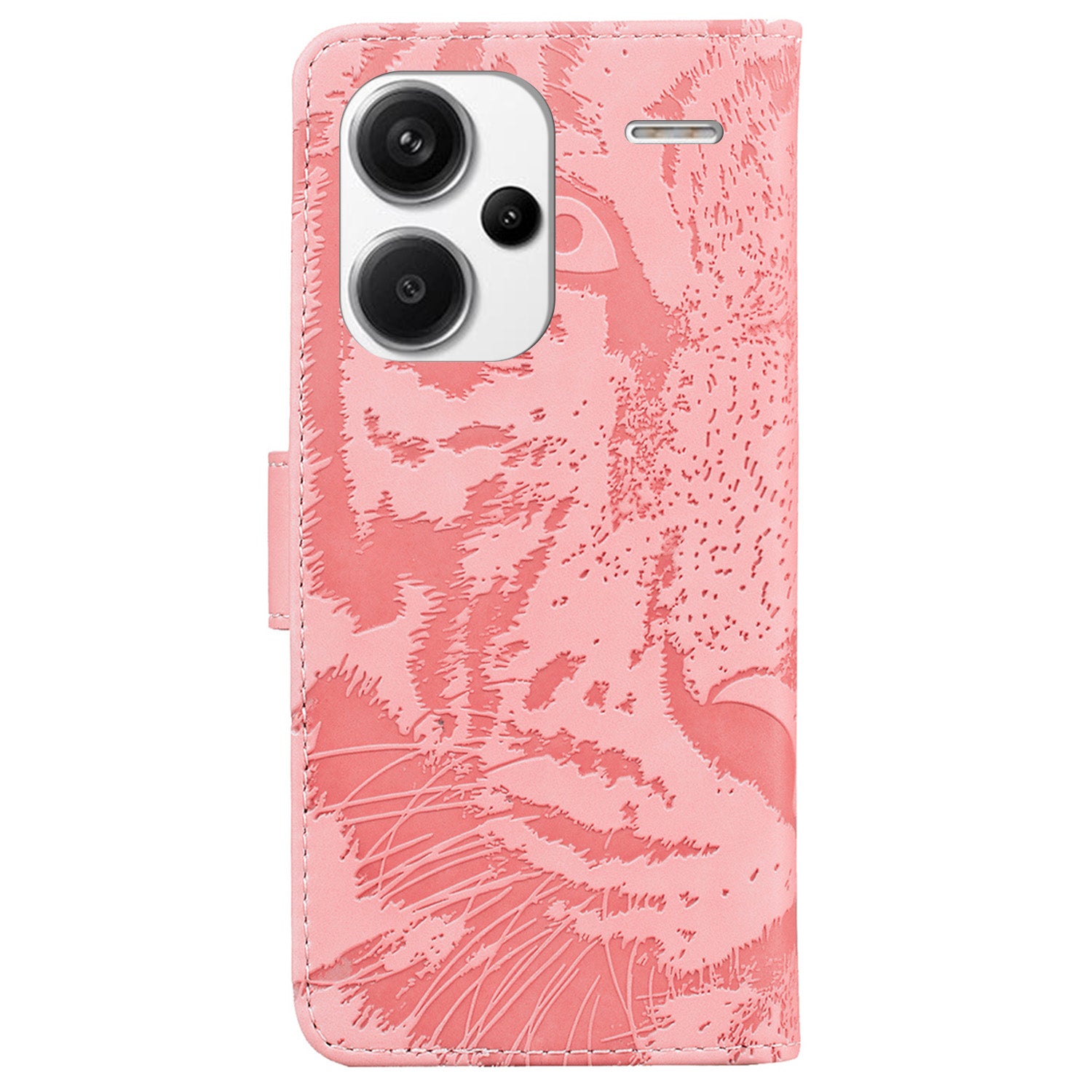 For Xiaomi Redmi Note 13 Pro+ 5G Wallet Case Tiger Pattern Leather Stand Feature Flip Phone Cover - Pink