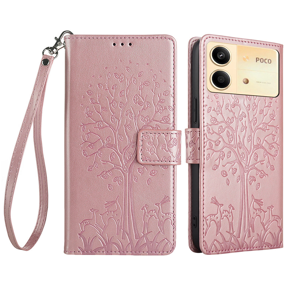 For Xiaomi Redmi Note 13R Pro 5G Case Imprinted PU Leather Wallet Stand Phone Cover - Rose Gold
