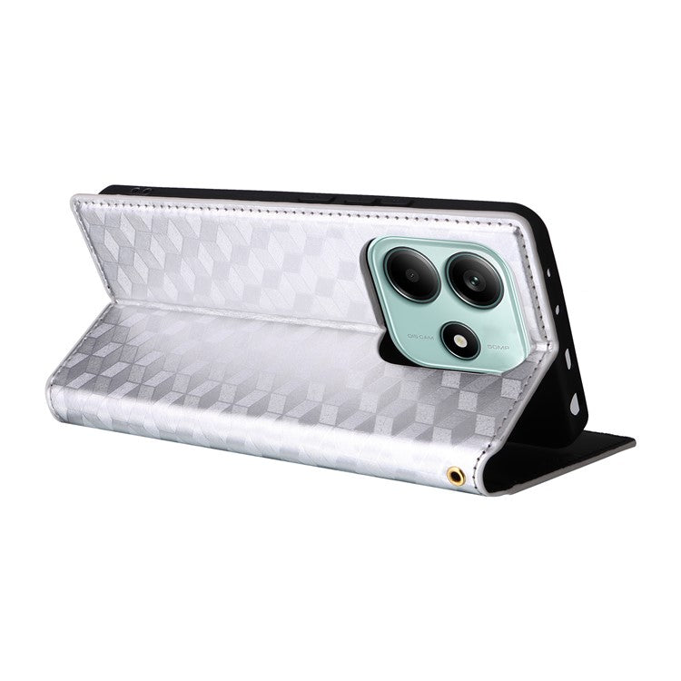 For Xiaomi Redmi Note 14 4G / 5G Wallet Case Rhombus Imprinted Leather Phone Cover - Silver
