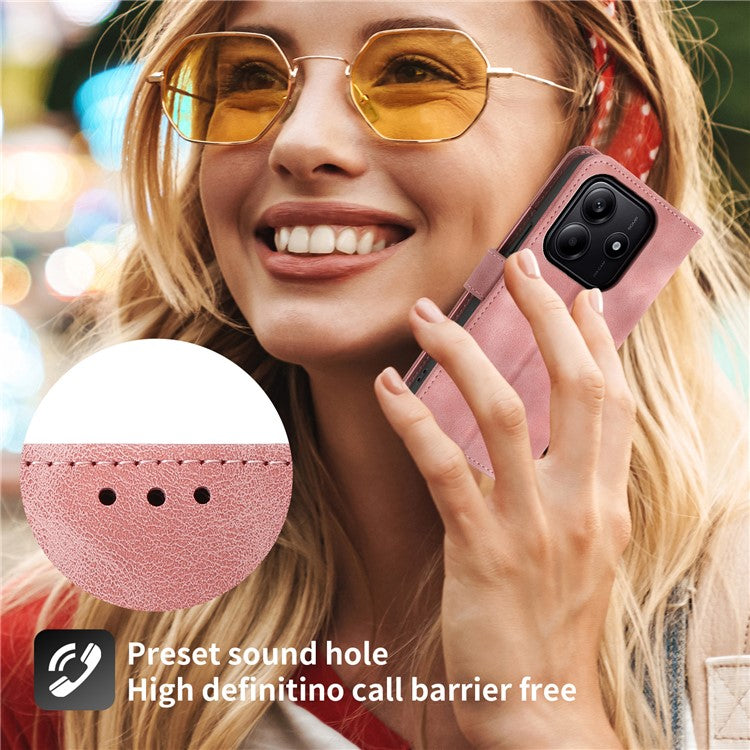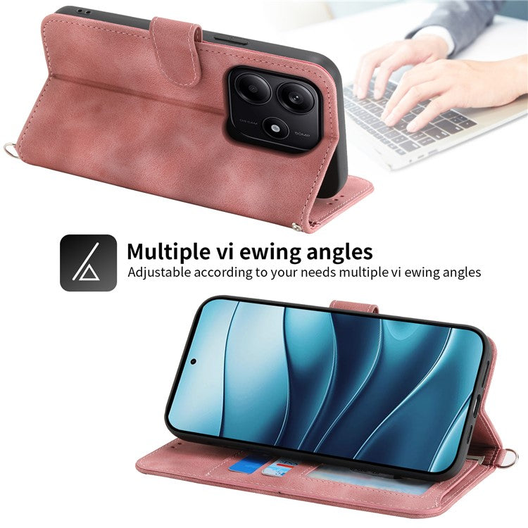 For Xiaomi Redmi Note 14 5G / 14 4G Case Flower Pattern PU Leather Wallet Phone Cover with Strap - Pink