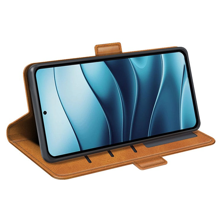 For Xiaomi Redmi Note 14 5G / 14 4G Stand Case Calf Texture Leather Wallet Phone Cover - Yellow