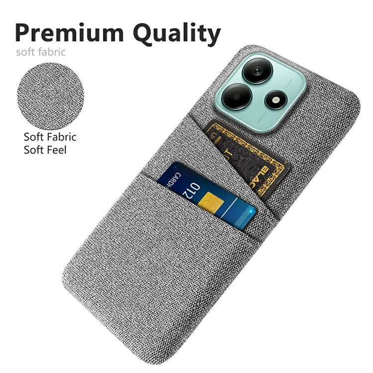 For Xiaomi Redmi Note 14 5G Case Cloth + Hard PC Phone Cover with Dual Card Slots - Light Grey