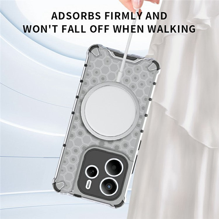For Xiaomi Redmi Note 14 5G Case Compatible with MagSafe Honeycomb Design TPU + PC Phone Cover - Red