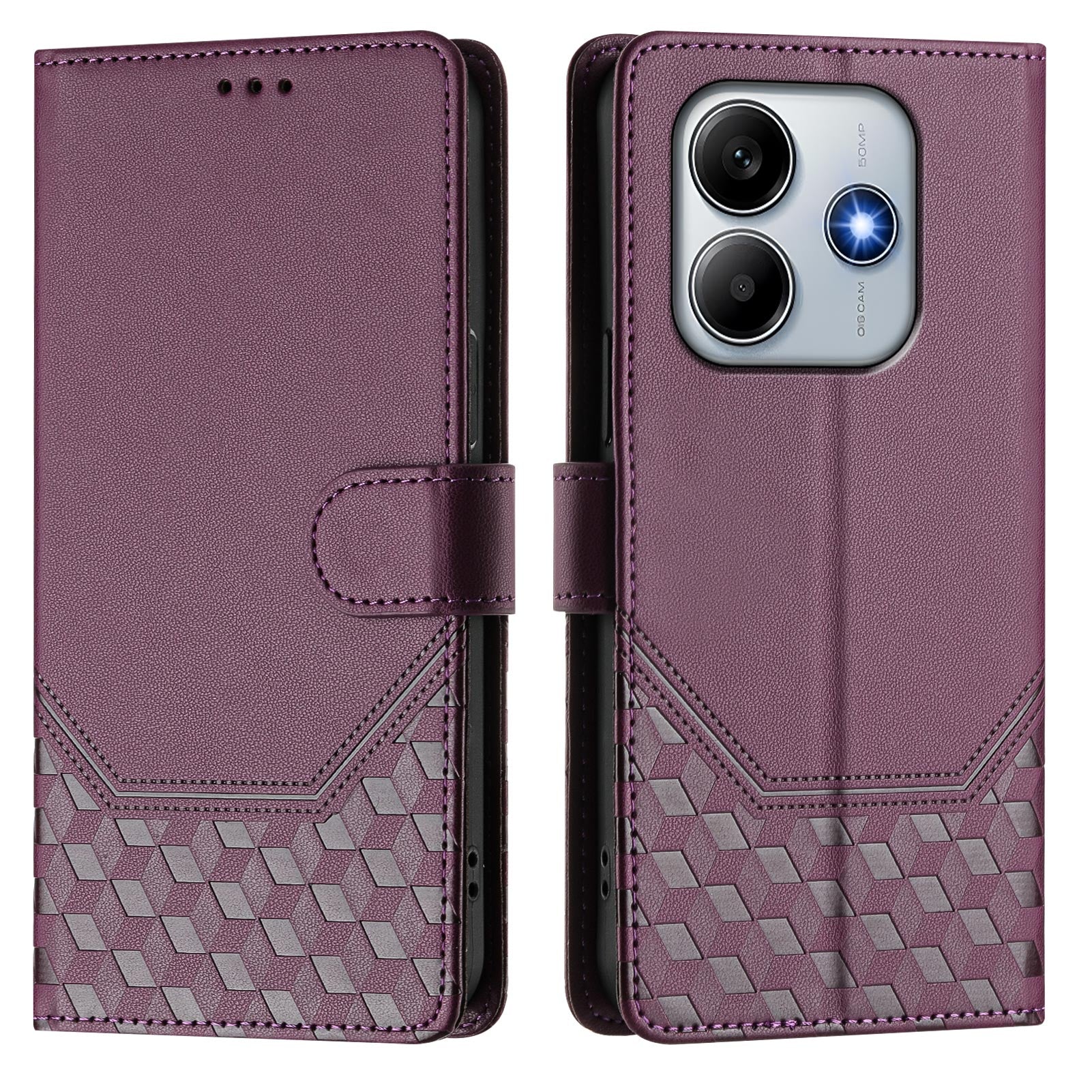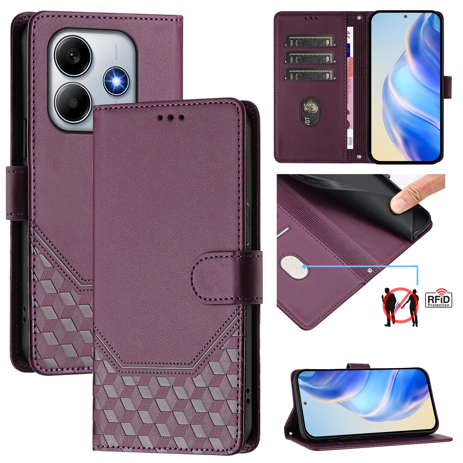 For Xiaomi Redmi Note 14 5G Case Imprinted Honeycomb RFID Blocking Leather Phone Cover with Strap - Dark Purple
