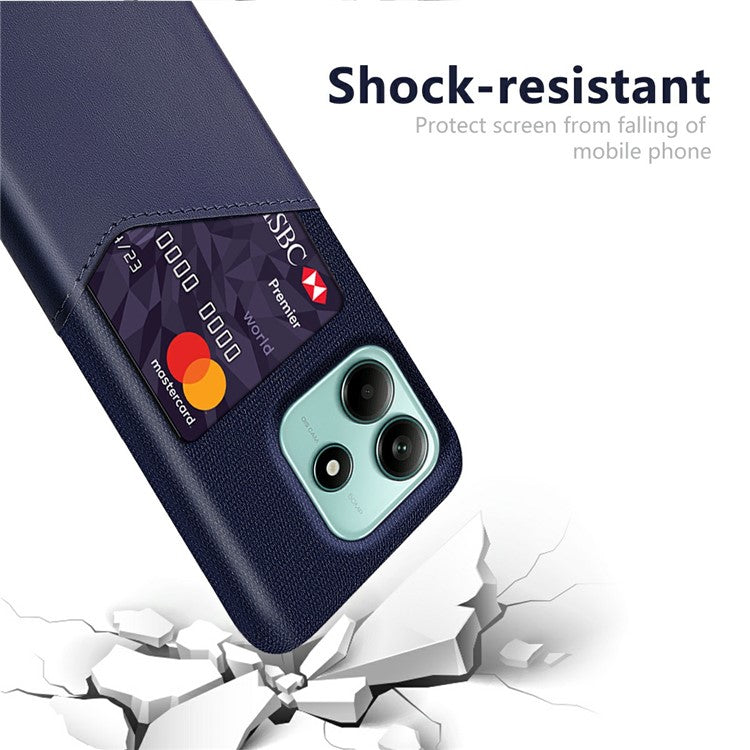 For Xiaomi Redmi Note 14 5G Case PU Leather Cloth Texture Hard PC Phone Cover with Card Holder - Blue
