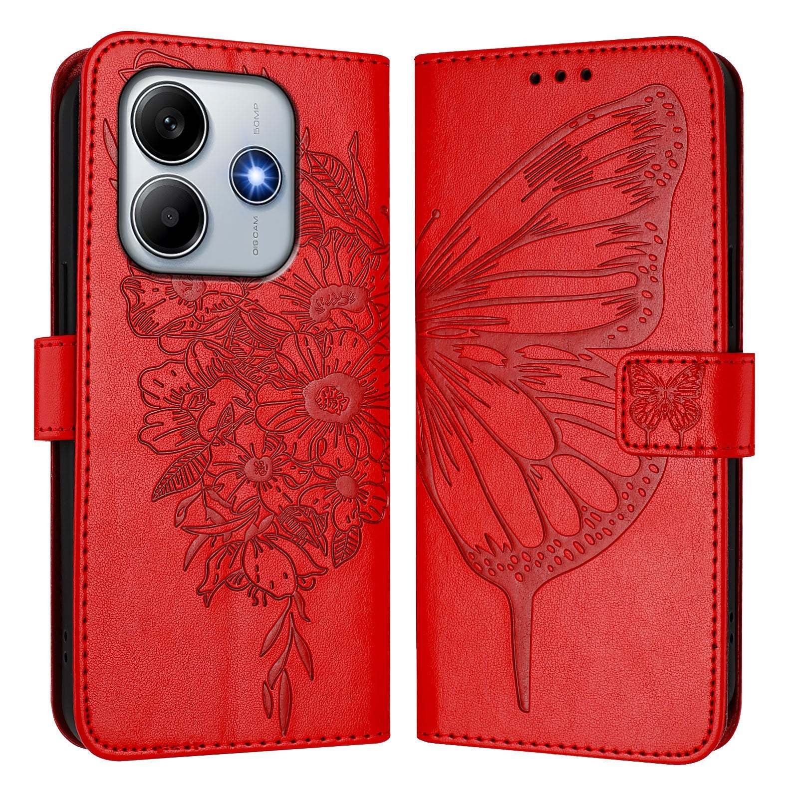 For Xiaomi Redmi Note 14 5G Case YB Imprinting Series-4 Butterfly Flower Flip Wallet Leather Phone Cover - Red