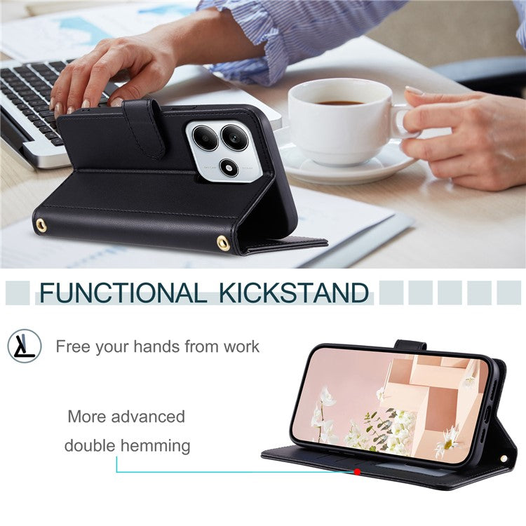 For Xiaomi Redmi Note 14 5G Wallet Case Rhombus Grid PU Leather Phone Cover - Black
