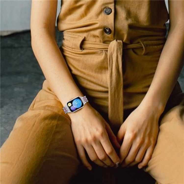 For Xiaomi Smart Band 8 Pro 3 Rows Rhinestone Zinc Alloy Watch Band Women Replacement Strap - Silver+Rose