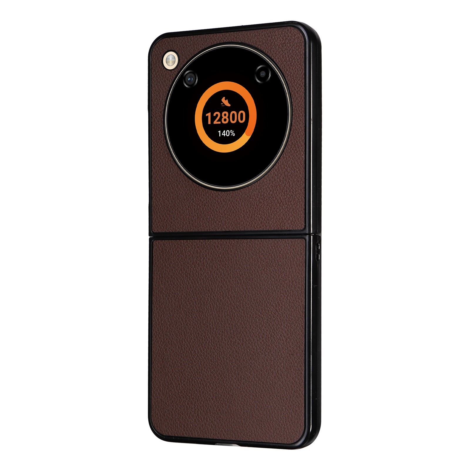 For ZTE Libero Flip A304ZT / nubia Flip 5G Case Litchi Texture PU Leather Coated PC Phone Shell - Brown