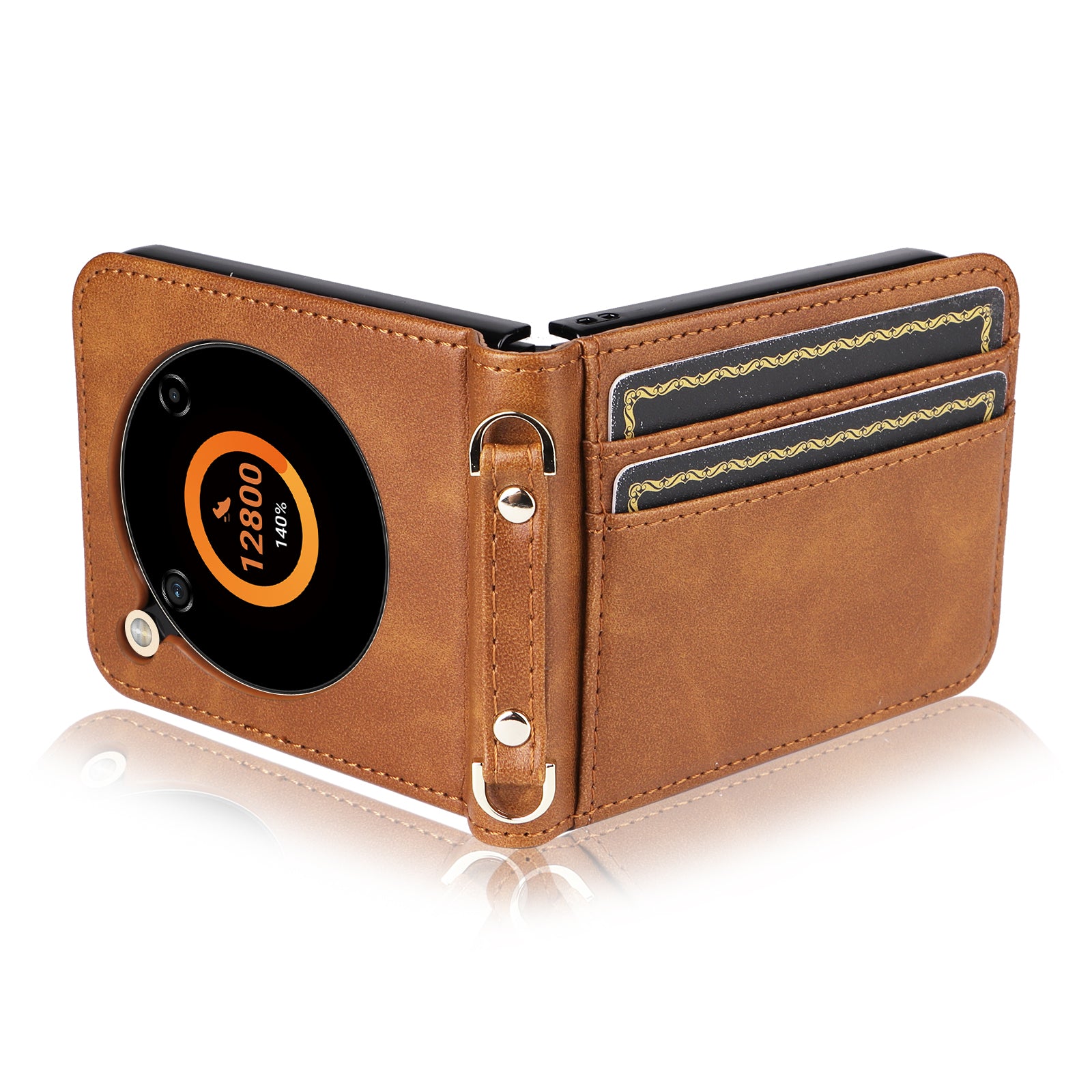 For ZTE nubia Flip 5G / Libero Flip A304ZT Case Card Holder Leather Phone Cover with Lanyard - Brown