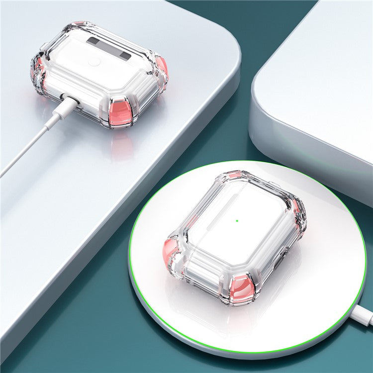 Four-corner Anti-Drop Clear TPU Protective Case Cover for AirPods Pro - Pink
