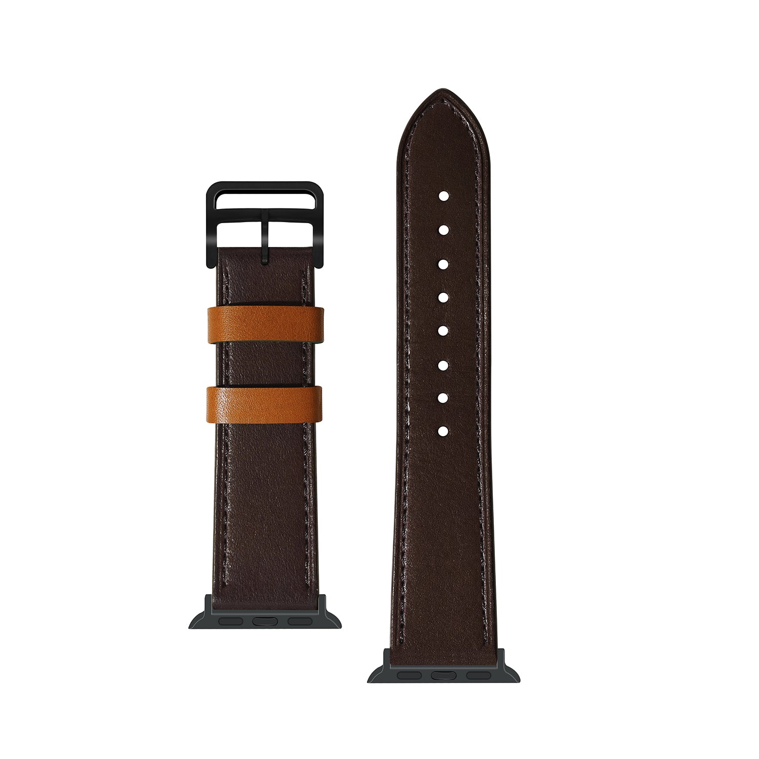 Fresh Contrast Color Genuine Leather Watch Strap for Apple Watch Series 8 45mm / Ultra 49mm / 7 45mm / Series 4 / 5 / 6 / SE / SE (2022) 44mm / Series 3 / 2 / 1 42mm - Brown