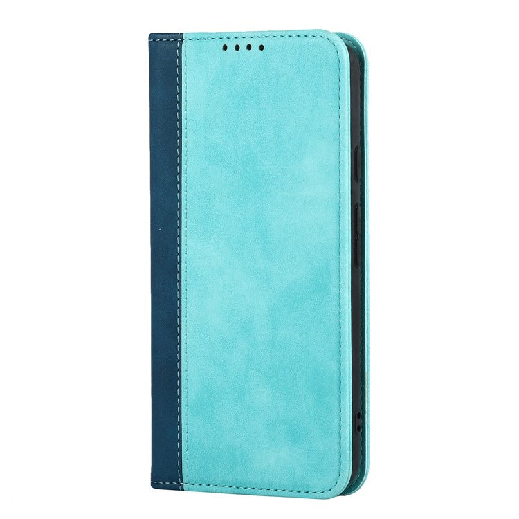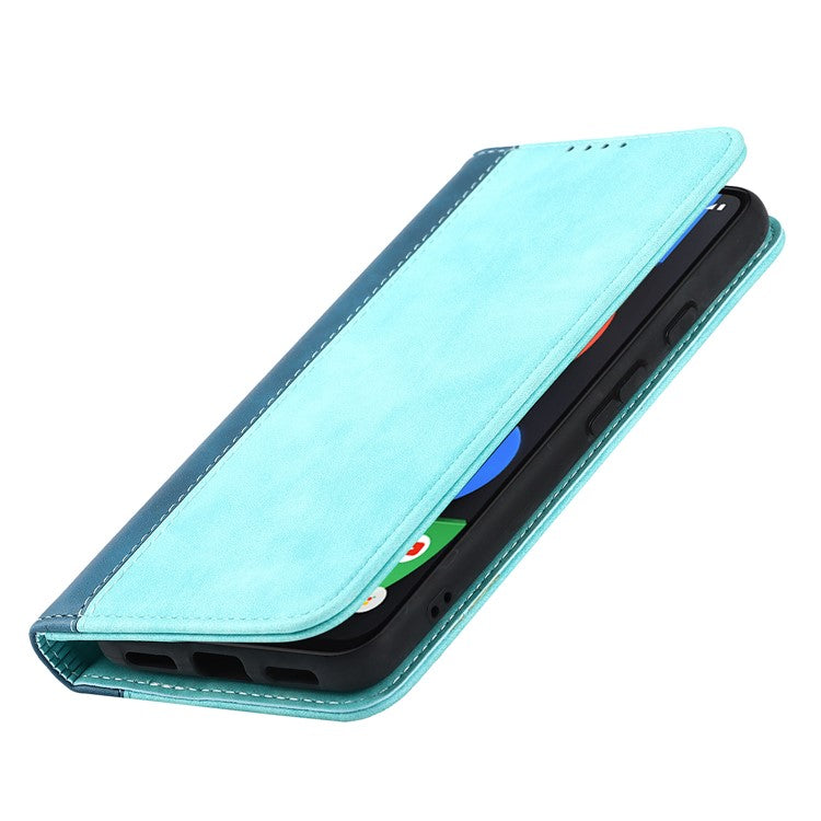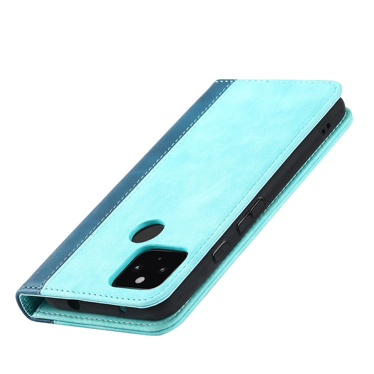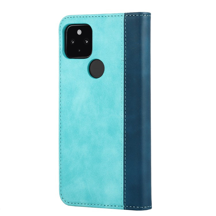 Full Protection Auto-absorbed Bi-color Splicing Design Leather Wallet Phone Shell Case for Google Pixel 5a 5G - Light Blue/Dark Blue