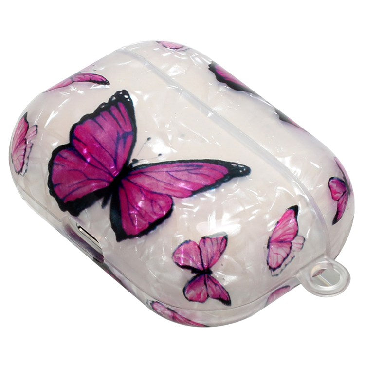 Full Protection Earphone Case for Apple AirPods Pro, Pattern Printed IMD TPU Cover Shell Grain Earbud Protector with Hook - Purple Butterfly