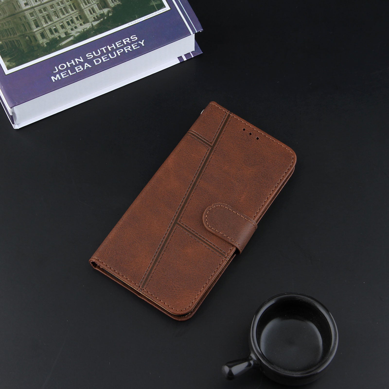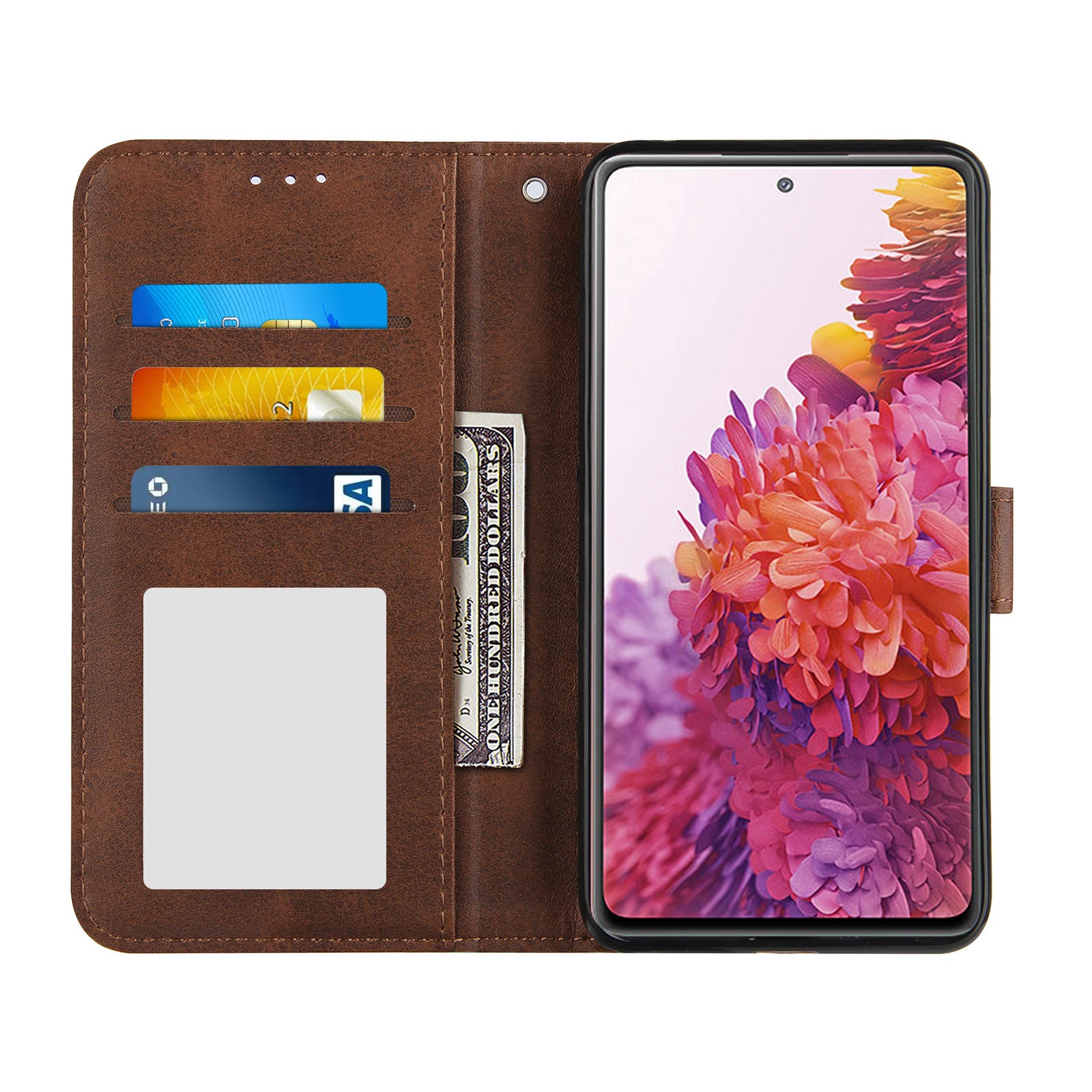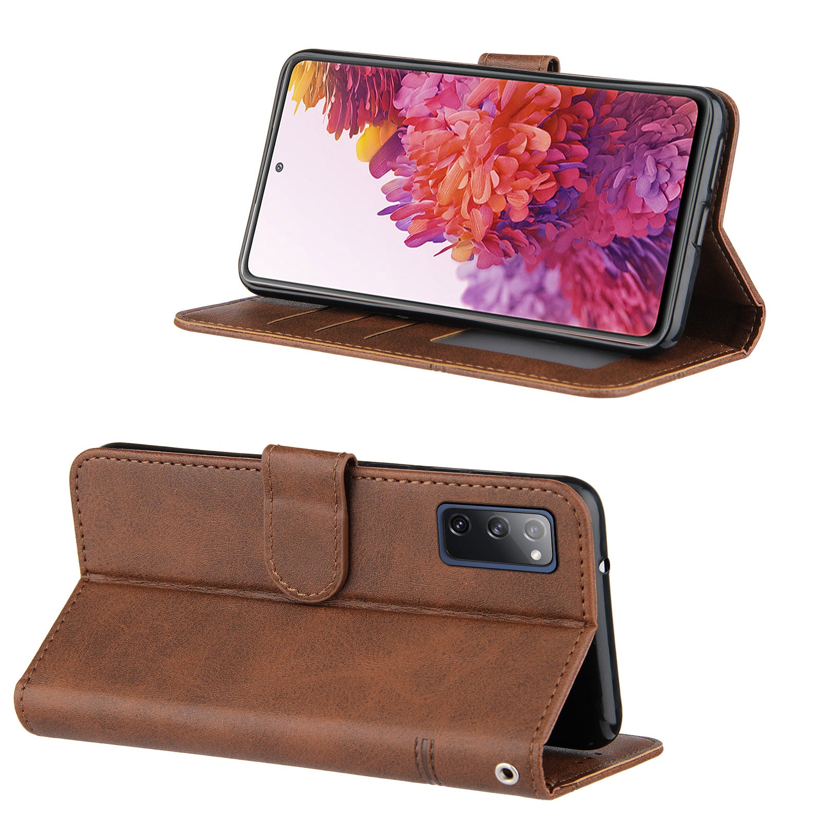 Full Protection Wallet Stand Design Concise Splicing Leather Phone Cover Case with Strap for Samsung Galaxy S20 FE 2022/S20 FE 4G/S20 FE 5G/S20 Lite - Coffee