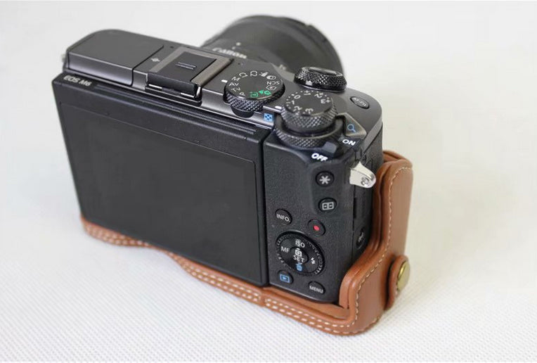 Genuine Cowhide Leather Half Case Bag for Canon EOS M6 Digital Camera - Brown