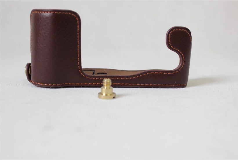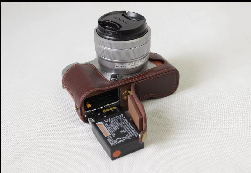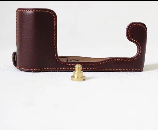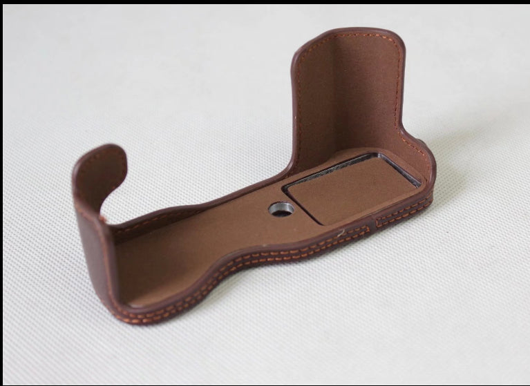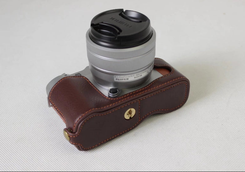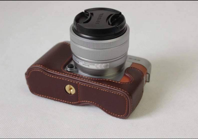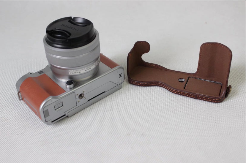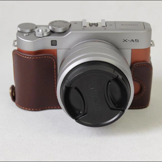 Genuine Cowhide Leather Half Protective Bag for Fujifilm X-A5 Digital Camera - Coffee