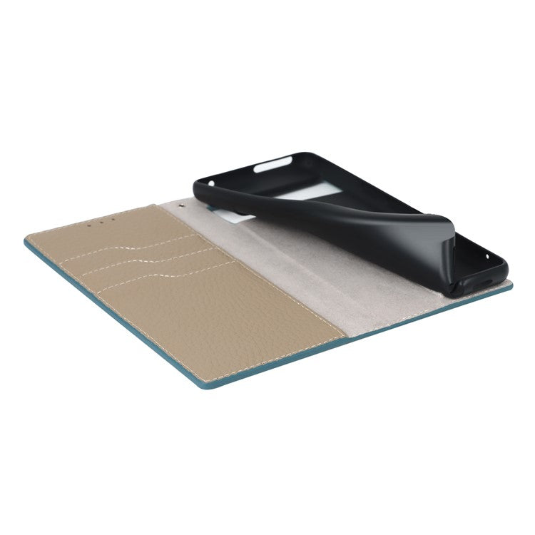 Genuine Leather Phone Case for Google Pixel 7a , Litchi Texture Wallet Stand Smartphone Cover with Strap - Baby Blue