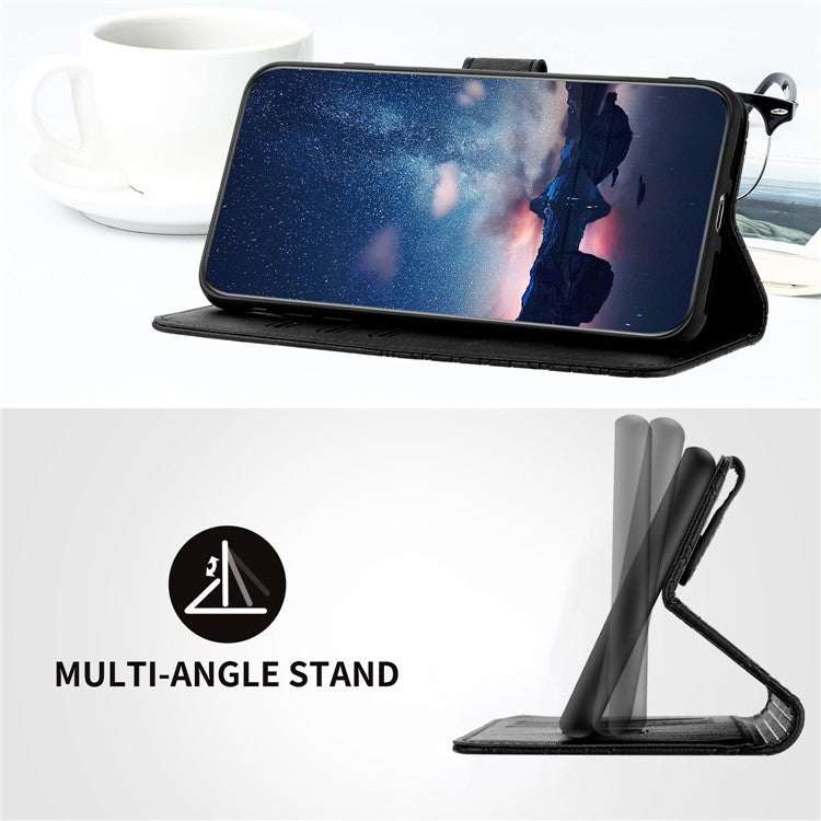 Geometric Imprinted Phone Case for Samsung Galaxy S22 5G , Microfiber Leather Stand Wallet Cover - Black