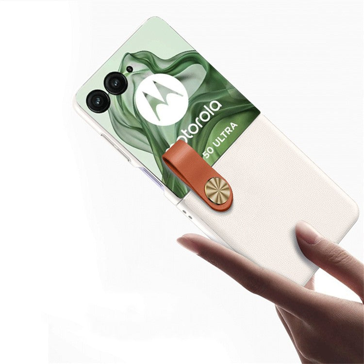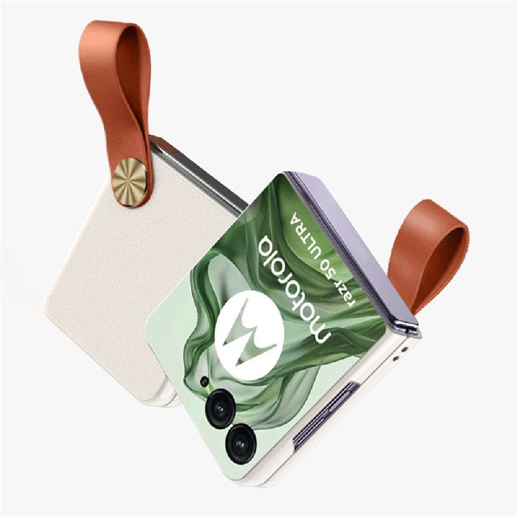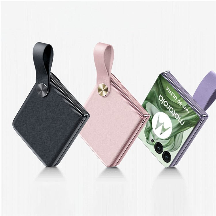 GKK For Motorola Razr 50 Ultra 5G Case Protective Hard PC Phone Cover with Leather Strap - Black