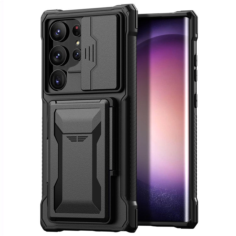 GKK For Samsung Galaxy S24 Ultra Lens Protection Case Card Slot Kickstand Phone Cover - Black