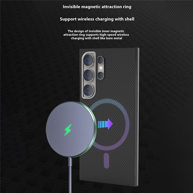GKK For Samsung Galaxy S25 Ultra Compatible with MagSafe Metal + PC Phone Back Cover Carbon Fiber Texture - Black